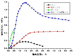 該技術通過將離散的短纖維絲(人工合成或者天然植物纖維)均勻摻入土體中,通過纖維和土顆粒之間的界面力學作用及纖維的拉筋作用,達到顯著提高土體的工程力學性能的目的。同傳統技術相比,該技術的具有如下優勢:(1)纖維與土體作用屬于物理過程,不改變土體的自然屬性,綠色環保;(2)纖維在土體中隨機分布,具有三維加筋作用,土體加固后具有各向同性特點;(3)纖維加筋的施工工藝簡單,工程性價比較高;(4)纖維加筋不僅具有顯著的增強效果,還能有效抑制土體破壞裂隙的發育。