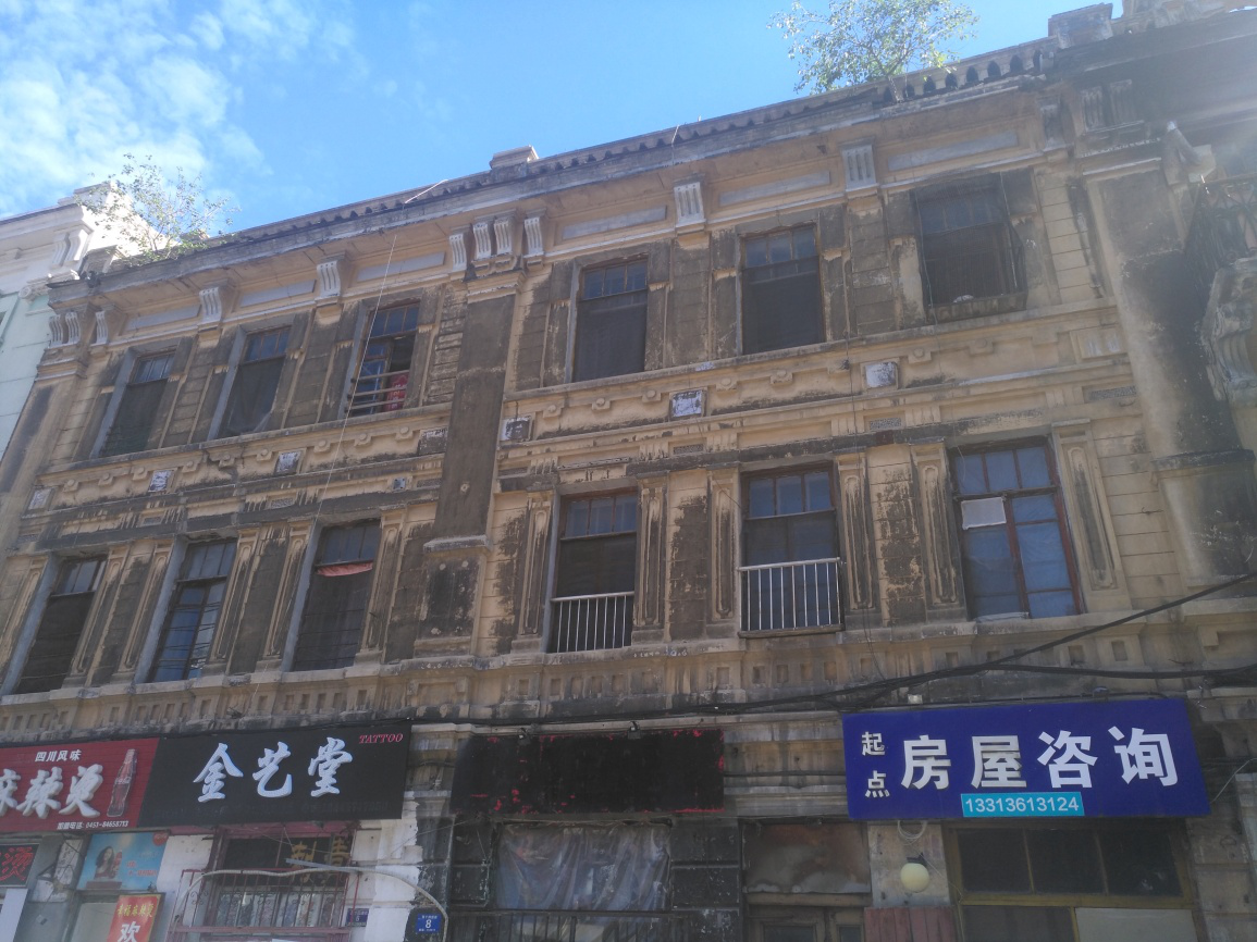 古老的中央大街。據說這幢房屋曾經發生過火災,好在沒有被燒毀,被保留下來了。
