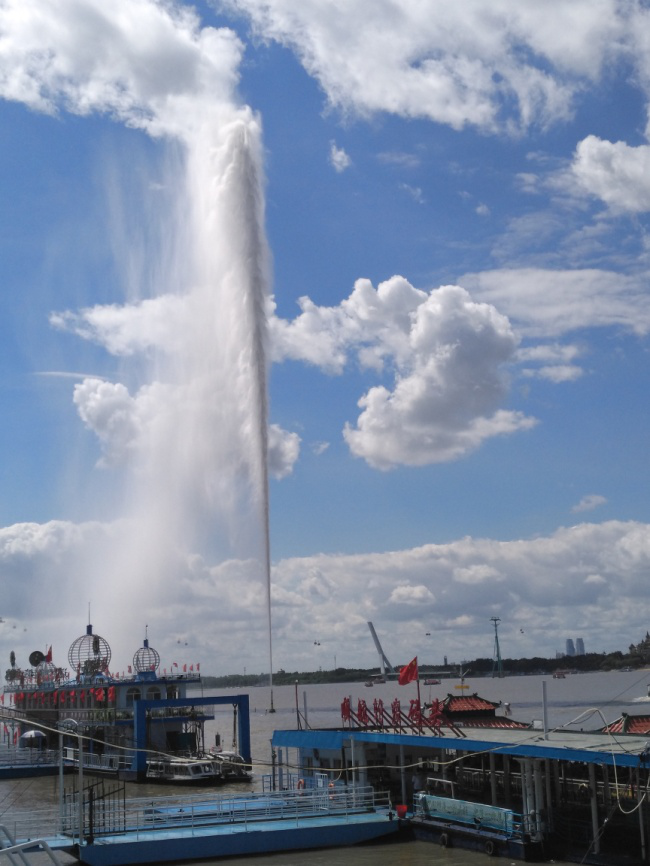 美麗的松花江,沖天的水柱在炎炎夏日給我們帶來絲絲涼意