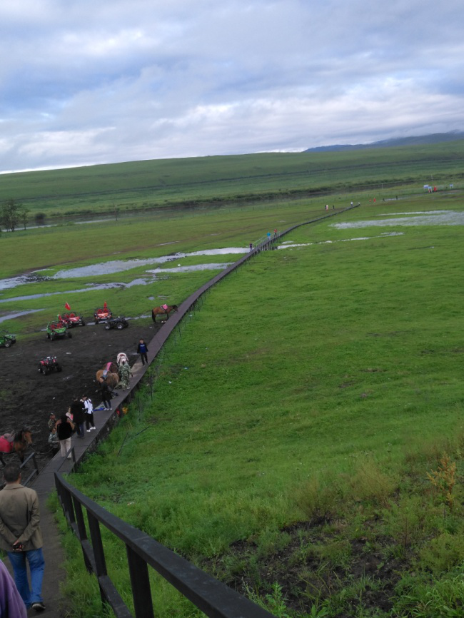抵達極具異域風情的室韋小鎮。這天入住的酒店樣子有點奇怪:全木制結構的“木刻楞”房子,看樣子很環保;唯一不足的就是隔音效果不太好,鄰間用水的嘩嘩聲聽得一清二楚。晚上會不會再有被呼嚕聲吵醒的問題,我著實有點擔憂。