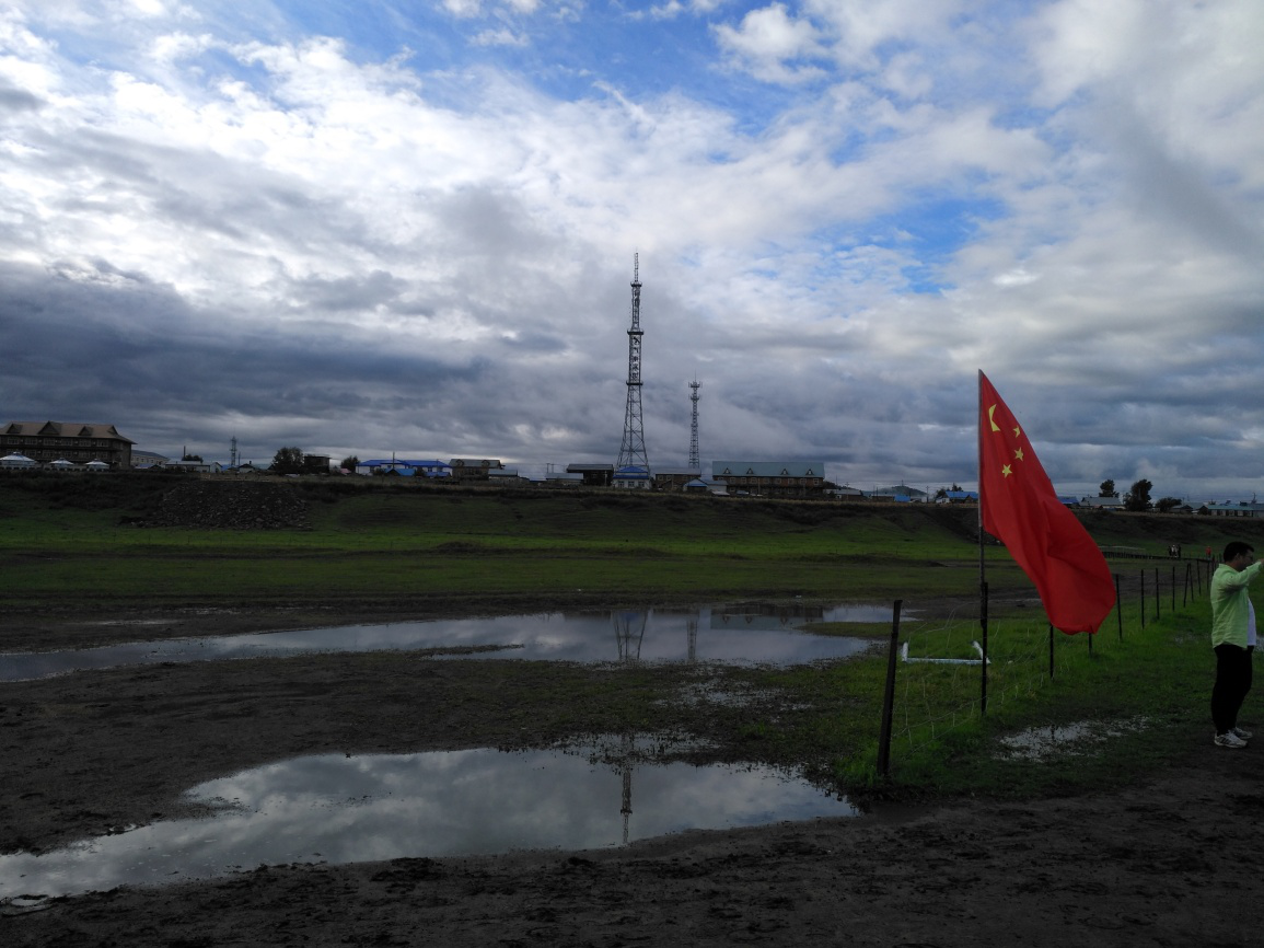 清晨的室韋小鎮界河廣場,天馬行空。許是被昨夜的雨神嚇到了,今天的太陽姑娘躲在云層里羞羞答答的,就是不肯露個全臉。