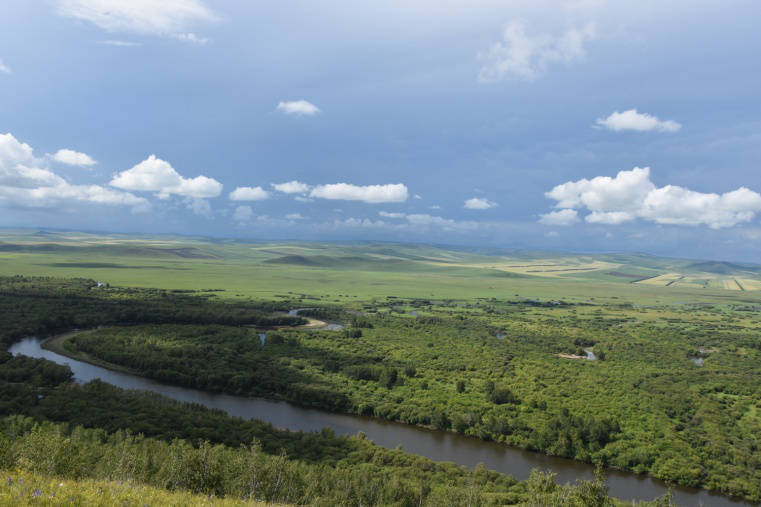 站在濕地公園的高處,俯瞰額爾古納市的全景。