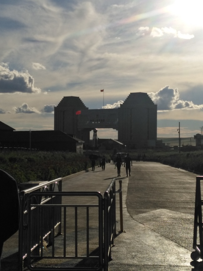 離的太遠,又是背光,照得不清楚,放大了看,才能隱隱約地看到“中華人民共和國”的字樣。還是在另外一個“北國第一門”來個合影好了。